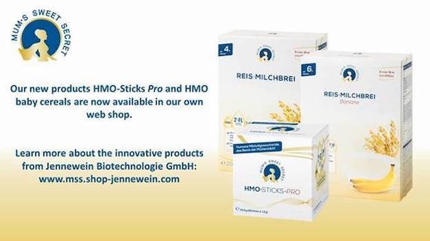 Seit kurzem gibt es Mum’s Sweet Secret Babybreie für Verbraucher auch bei uns im Online-Shop der Firma Jennewein1 Biotechnologie, einem Pionier im Bereich der Herstellung von humanen Milch-Oligosacchariden. Dabei handelt es sich um den ersten Babybrei, der die HMOs 2‘-Fucysyllactose und NANA enthält. Beides sind Nährstoffe, die sich in großen Mengen in der Muttermilch befinden und entscheidend zu einer natürlichen Entwicklung der Säuglinge beitragen.