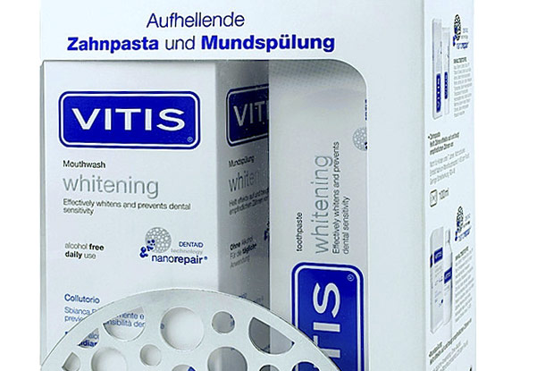 Die richtige Zahnpasta plus Mundspülung könnenn Zähne nicht nur aufhellen, sondern auch effektiv den Zahnschmelz schützen. So enthält beispielsweise die Rezeptur von VITIS® whitening Zahnpasta und Mundspülung flüssigen Hydroxyapatit, das dem natürlichen Zahnschmelz nachempfunden ist. Diese Partikel gehen eine Verbindung mit der Oberfläche des Zahnschmelzes ein und bilden eine reinigungsbeständige Schutzschicht.