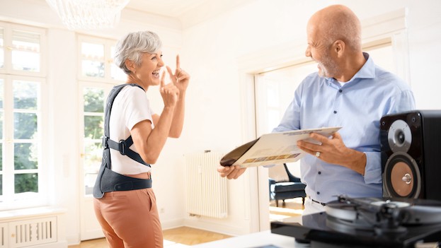 Besonders empfehlenswert ist hier die die Wirkweise einer Rückenorthese, wie z.B. Spinomed® von medi, die auf dem Biofeedback-Prinzip basiert. Die Rückenschiene, der unelastische Hüftgurt und das clevere Schultergurtsystem sorgen dafür, dass der Patient unterbewusst einen Widerstand spürt, sobald sich der Oberkörper nach vorne in eine Fehlhaltung neigt. Durch den spürbaren Widerstand der Orthese wird der Patient an die korrekte Körperhaltung erinnert. Die Rumpfmuskulatur wird aktiviert und der Oberkörper aufgerichtet. Das Ergebnis: eine Reduktion der Schmerzen und Schwankneigung, mehr Lebensqualität, Stärkung der Bauch- und Rückenmuskulatur sowie eine verbesserte Lungenfunktion12.