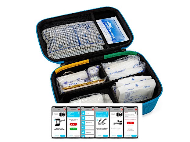 Das PocDoc-System bietet aber nicht nur Ersthilfe-Maßnahmen für Kinder und Säuglinge, sondern auch für Erwachsene. Sogar Hunde und Katzen können mit PocDoc versorgt werden. Die App wurde zusammen mit Ärzten entwickelt und beinhaltet über 300 Behandlungsschritte. Sie ist für IOS und Android verfügbar. Das Case enthält alle notwendigen Materialien plus Zusatzkomponenten und dient auch als Auto-Verbandkasten.