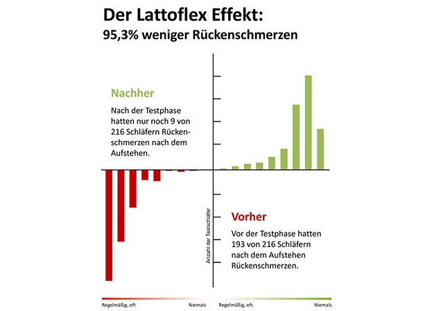 Wie wichtig die richtige Bettstätte bei der Nachtruhe ist, hat die durchgeführte Studie mit dem Lattoflex Bettsystemen bewiesen. Dieser Schlaftest erfolgte unter der Aufsicht des bekannten Schlafexperten Prof. Dr. Zulley , Präsident der Deutschen Akademie für Gesundheit und Schlaf und Prof. Dr. med. Erich Schmitt, Vorstands- Vorsitzender Forum Gesunder Rücken – besser leben, der AGR und der Zeitschrift SCHÖNER WOHNEN.